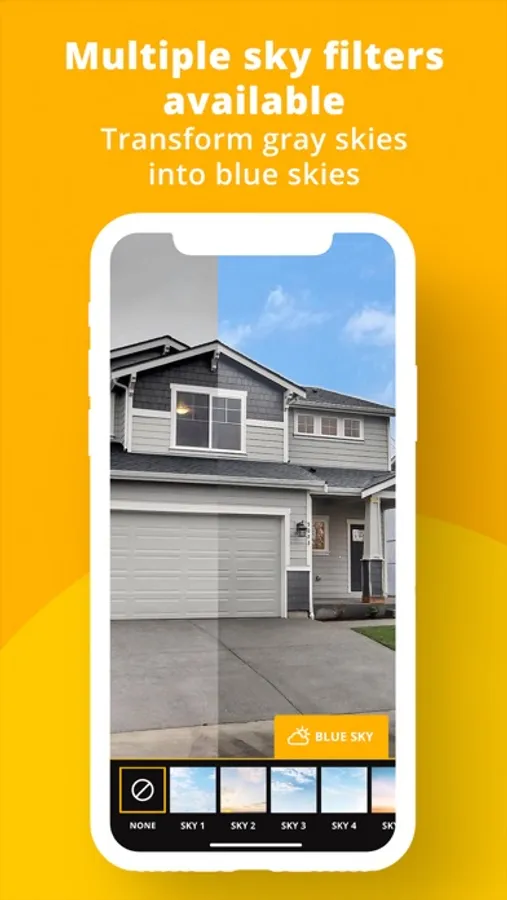 Shoot the outdoor of a property and use the Blue Sky feature that allows you to replace a gray sky with a beautiful blue sky. This process is done in a second, and gives you stunning results.
