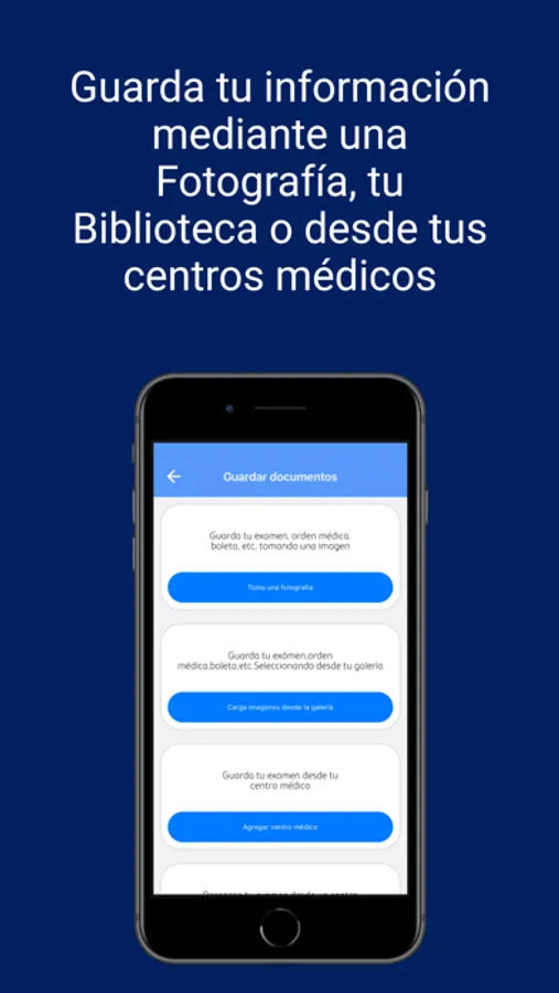 Con InfoMED podrás guardar toda tu información médica, independiente en qué centro médico te realices tus controles y exámenes. Saca una fotografía al documento, búscalo en la biblioteca de tu equipo, o ingresa los datos del centro médico donde te atiendes con tu usuario y acceso, y ya quedará sincronizado para siempre. También podrás solicitar de forma programada que rescatemos algún examen desde el sitio web del centro médico que nos indiques.