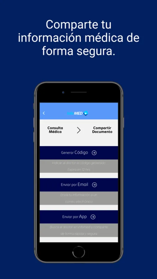 Comparte tu historial médico con tu doctor para que tenga total conocimiento de tu estado de salud. En caso de alguna urgencia, podrás mediante un solo click, compartir tu ficha médica resumida, que será de enorme valor para quien te atienda en primera instancia.