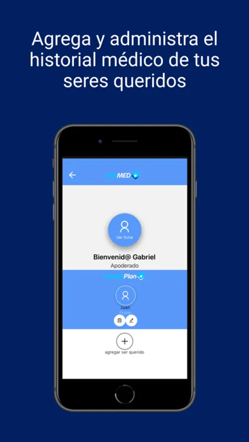 Contamos con un “Family Plan”, donde podrás agregar y administrar el historial médico de todos tus seres queridos: Hijos, padres, abuelos, e incluso nuestras mascotas.