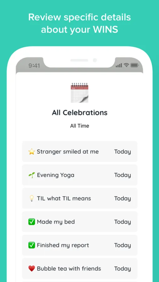 Wins is an app to help you celebrate anything positive, small or large, to reinforce yourself positively as you go through life. It is built with simple interactions to help you recognize important moments that occur throughout your day, which leaves you feeling confident. With unlimited categories, you can organize your celebrations in essential areas of focus and then reflect on how you are doing in each one.