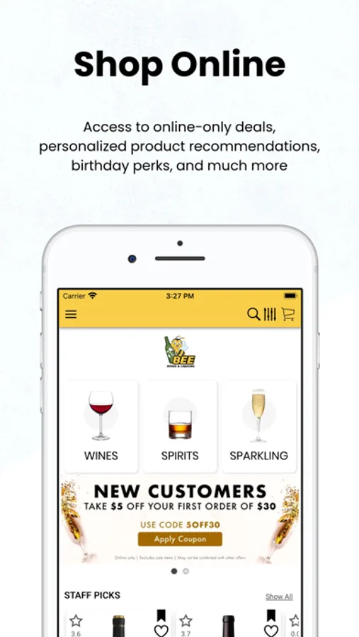With the App you can browse for the wines & spirits available in the store, and also order a delivery or pickup.
