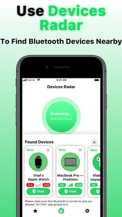 – Devices Radar – Scan the area to find all Bluetooth devices near you.