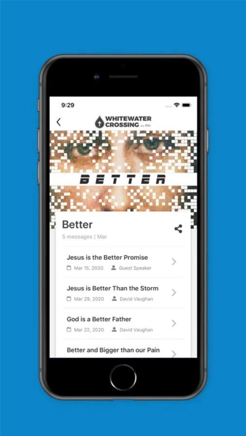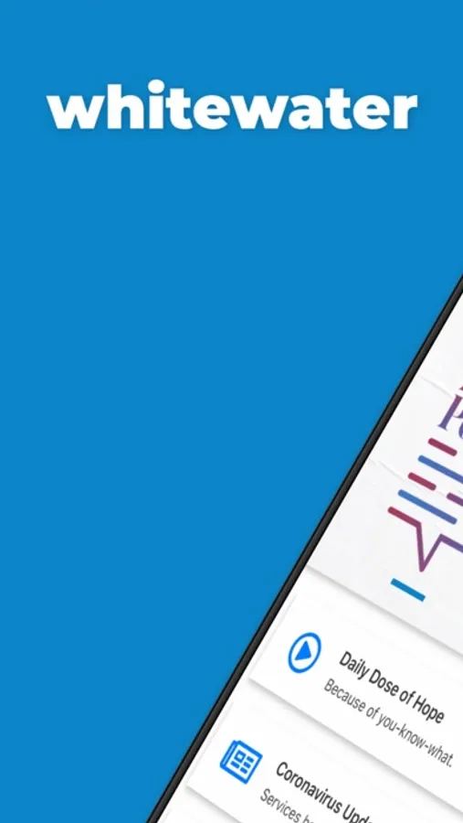 The Whitewater App is all of the great content that is created customized for your device! Some of the features include a dynamic calendar plus registration options for events, an all-new church online viewing experience along with archived video and audio messages, online giving that is made easy, the ability to create or use a login so we can provide you a custom experience based on your needs and history, blog and content that keeps you inspired and growing during the week, searchable tools to find groups and community at Whitewater, and custom experiences for your kids and teenagers.