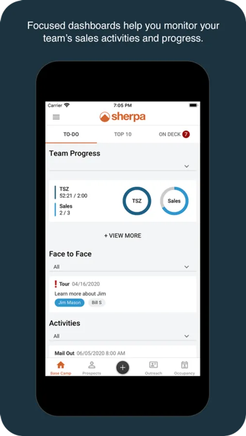 The mobile version of our CRM is the ideal way to access or add sales data on the go. Log in using your Sherpa CRM credentials and you’ll have instant access to your prospects, their influencers, professional outreach, occupancy and more.