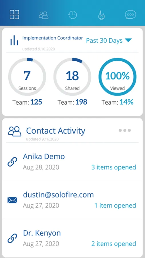 • Detailed contact activity every time you share content from our proactive Pulse Dashboard
