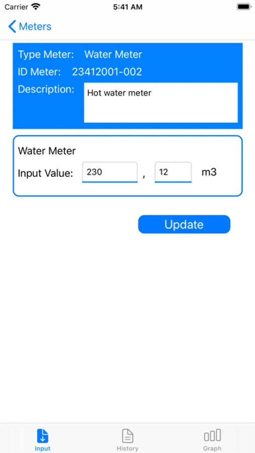 The application is designed to keep a log of indicators of resource meters: Gas, Water, Electricity. The application allows you to build a graph of resource consumption, as well as watch in retrospect the consumption of resources by meters