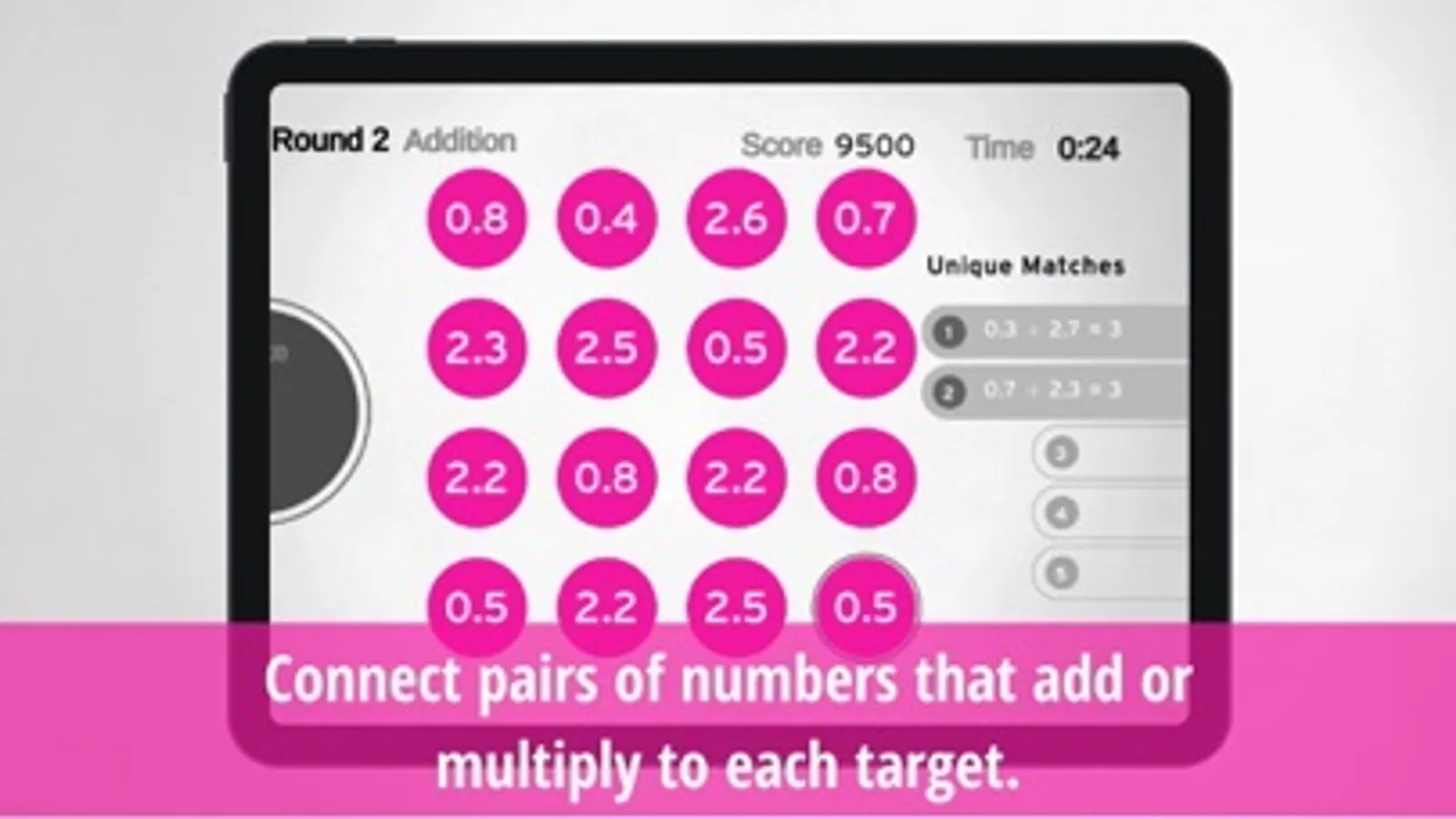 • Circles: Connect pairs of numbers that add or multiply to each target. Swap the circles around to connect the addends and multiplicands that make the target number. There are 5 number pairing to find in each round. Try to get them all!