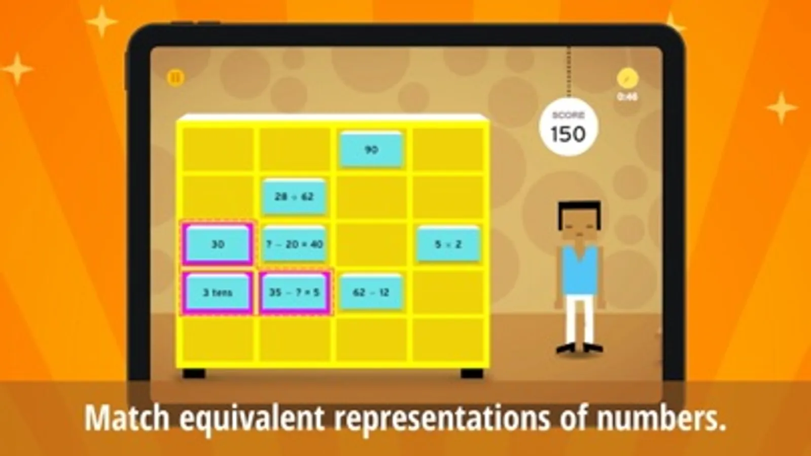 • Decked Out: Make your character dance by matching equivalent representation of numbers. Sort different representations of numbers – from equations to number lines – and match three-in-a-row to help your character get ready for the party.