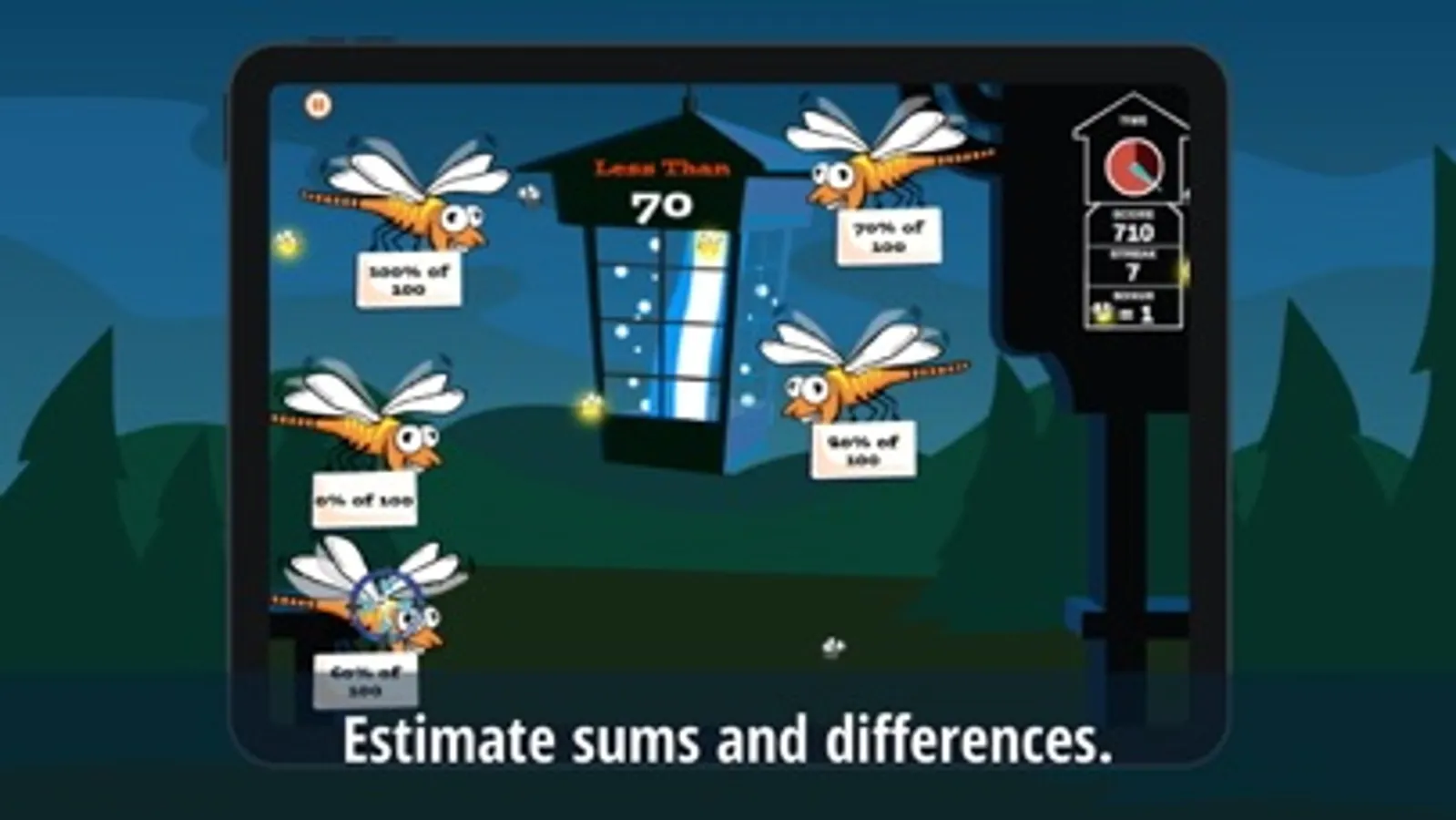 • Gnat Zapper: Zap bugs by estimating sums and differences. Bugs are only around briefly, so be quick about zapping the bug that satisfies the target number condition in this fast-paced game.