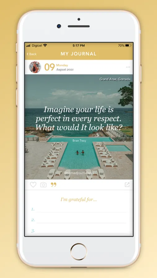 Nomad Journal App is your ultimate companion in this journey of making your dream lifestyle a reality. It is a daily journal that helps you be mindful and focused on what you really want. It is a simple and effective tool that is designed based on proven life coaching and agile methodology framework so you can adapt and embrace the change, transform yourself, and take action to achieve your dreams through self-awareness, setting small achievable goals, and continuous improvement. It provides you a daily source of motivation, inspiration, and positivity to help you keep moving forward and be closer to your dreams every day.