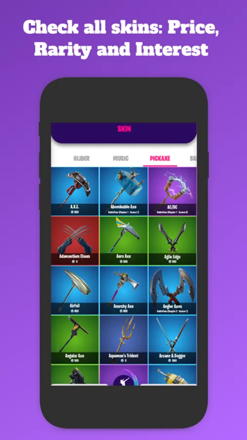 Skins: Outfits, backpacks, cosmetics, sprays, toys, wraps, glider, bundles and much more. Check the price, rarity and interest of the community!