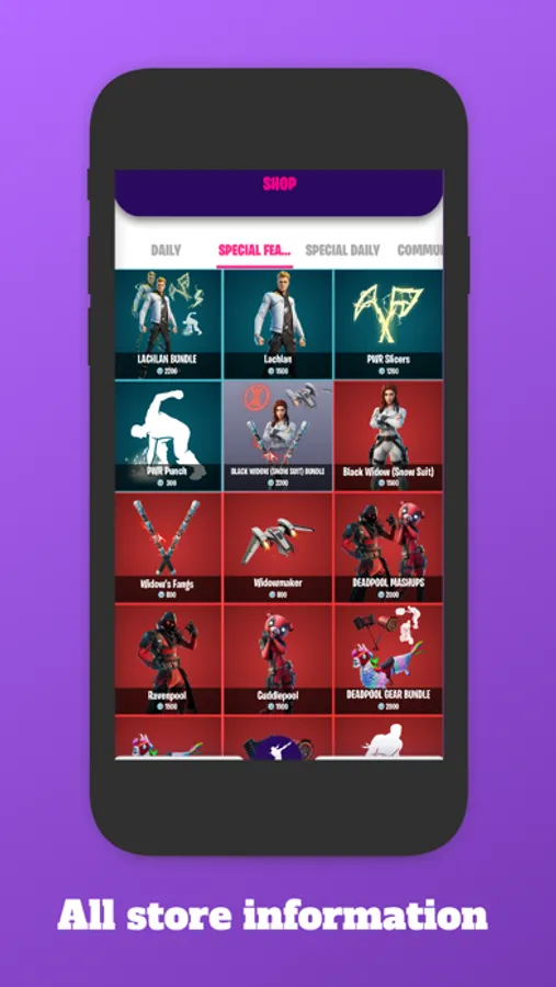 Get all the Fortnite emotes, player stats, skins, shop, weapon stats and much more! All you need in just one App.