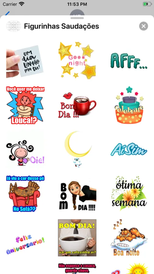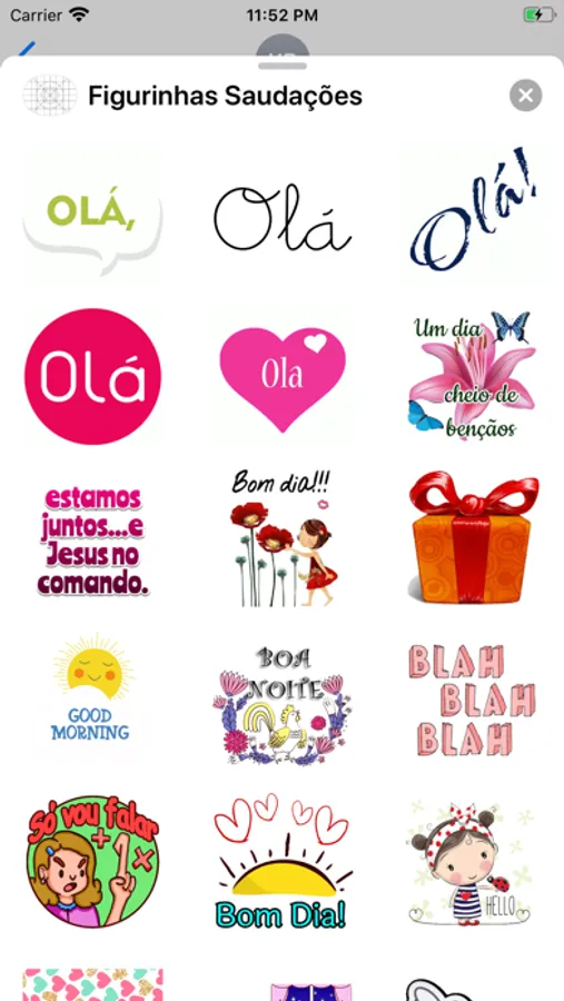 Contêm figurinhas para utilizar no seu dia a dia, tais como bom dia, boa tarde e boa noite, Oi, como vai?