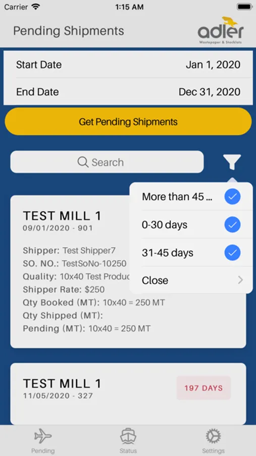 The Adler Track and Trace App, developed by U.S. Computers, brings together buyers and sellers of used paper. Sellers and buyers can keep track of their shipments and can view all the pending documents required for the sale.