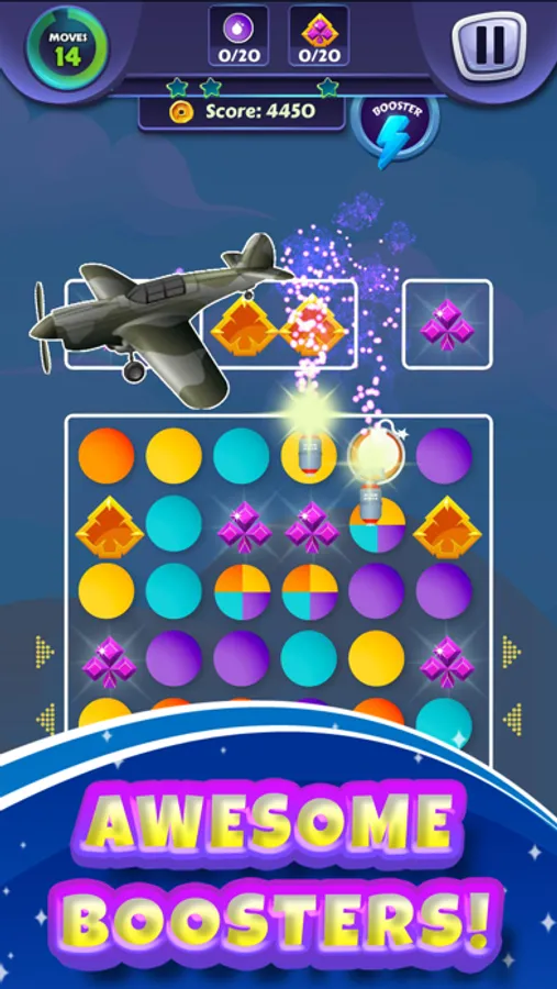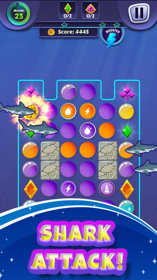 Your mission? Collect sparkling gems through strategic moves, unlocking hidden treasures that await. Need an extra edge? Unleash the power of boosters – soar high with a plane dropping powerful bombs or dive deep with a school of sharks that expertly pop the dots.