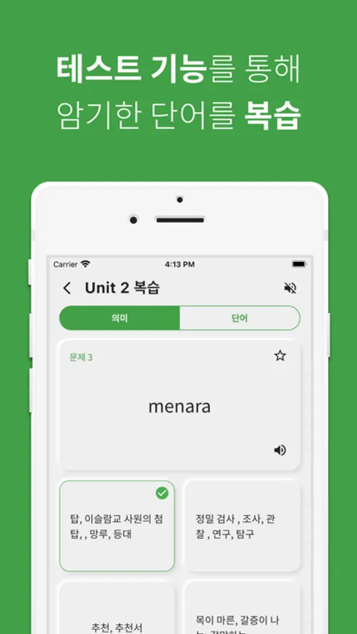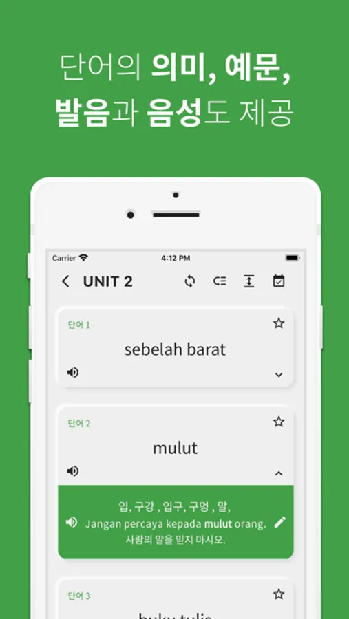 - 파트별, 유닛별, 전체 인도네시아어 단어를 복습하는 기능 제공