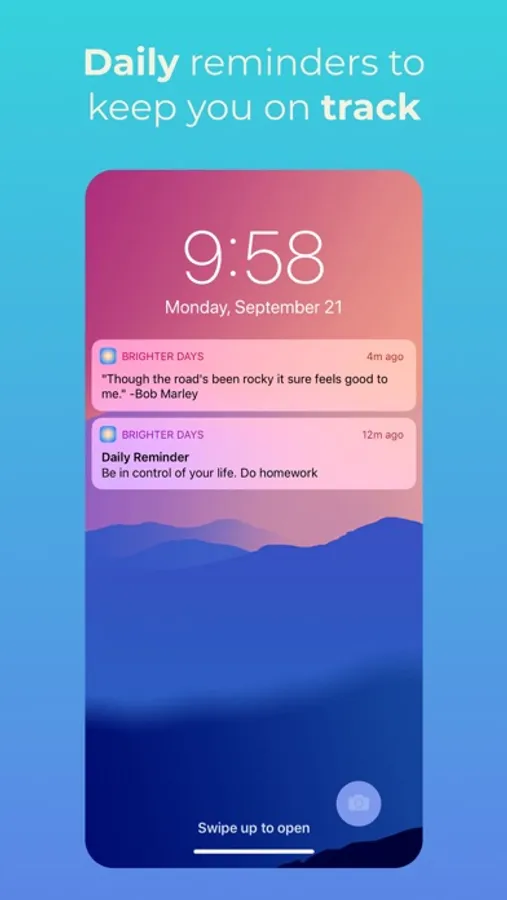 We've all been there... Sitting at home, unmotivated, depressed, not knowing where to go next. It's okay, life sucks and we know that, and when we are down, it's extremely hard to get back up. Brighter Days is meant to help introduce positivity into your life to help you get back in the right mental space to either get out of a rut you may be in, or reach out for additional help. In other words, we are trying to assist you in creating a positive mental foundation that will permit and foster growth within you. With that in mind, here are our features -