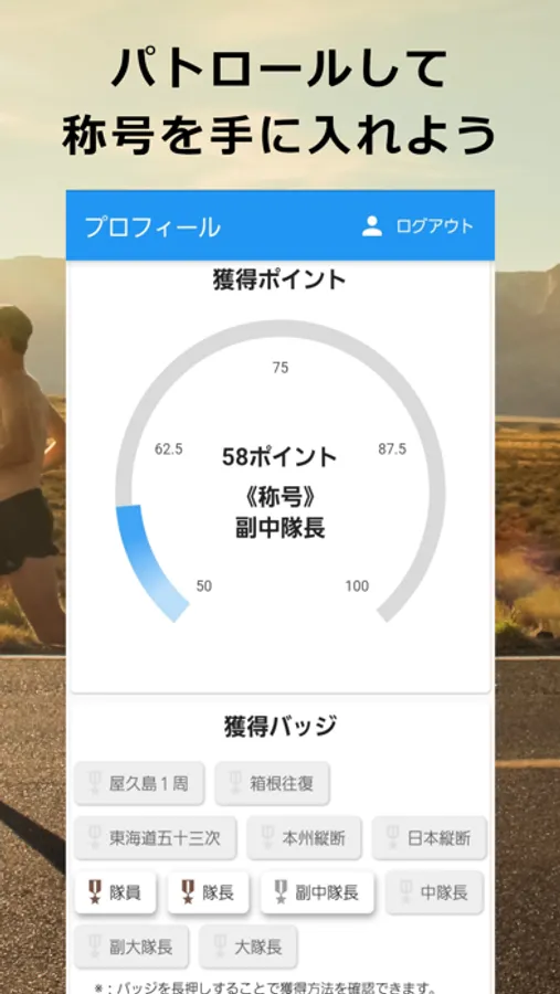 アラートスポットを見回ることによりポイントがたまり、ポイントに応じて称号が付与されます。