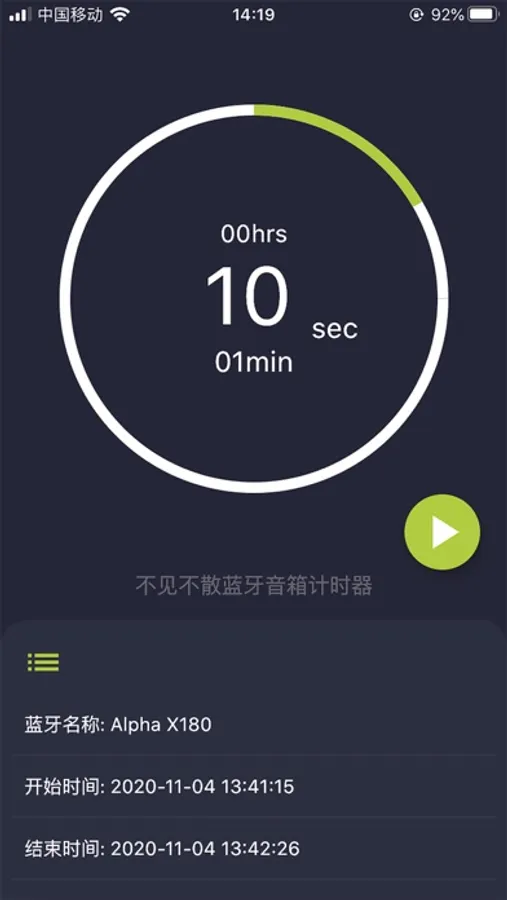 蓝牙耳机音箱电量测试工具,根据蓝牙音频设备接入及中断状态,记录开始及结束时间节点,算出电量可用时长!
