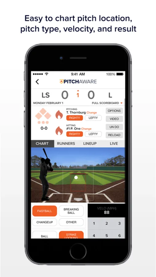 To be used in conjunction with the PitchAware App -- multiple livestreams, automated video highlights, scouting reports, and advanced analytics on each player.