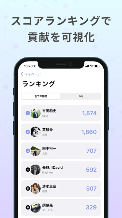投稿数、反応の数に応じてスコアを付与する仕組みがあります。