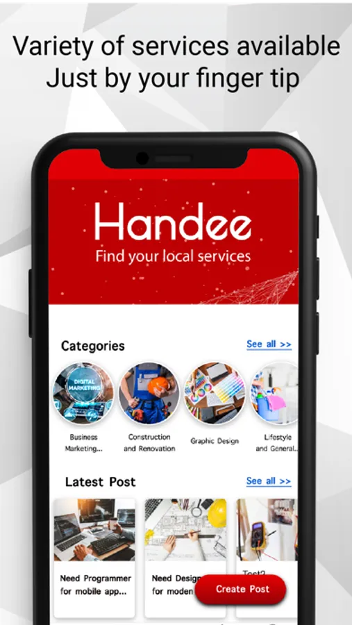 Welcome to Handee mobile application, It is a platform which helps people in community to connected, as well as helping people solving their daily life troubles, shores, general or even professional matters.