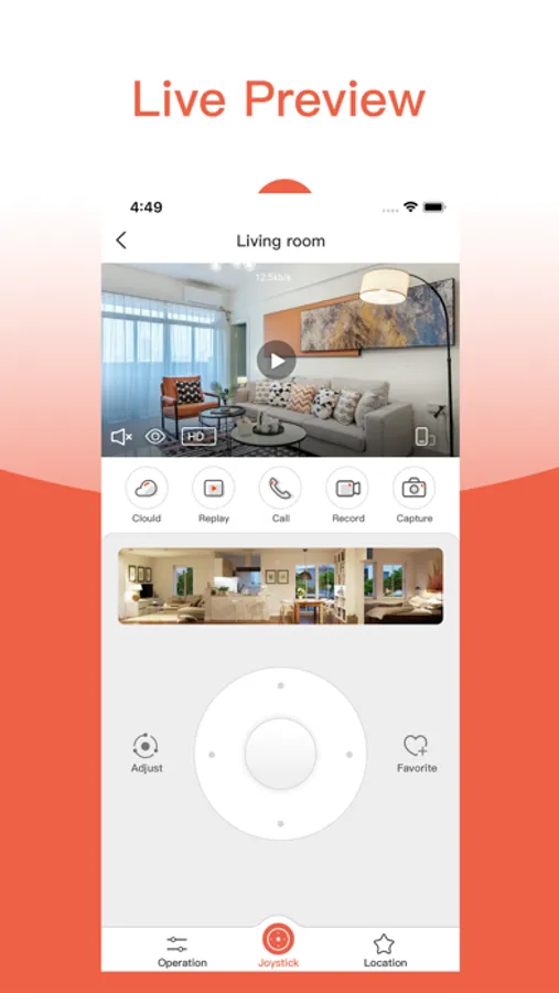 5、Support to control the rotation of camera's joystick through APP and support 360-degree panoramic monitoring.