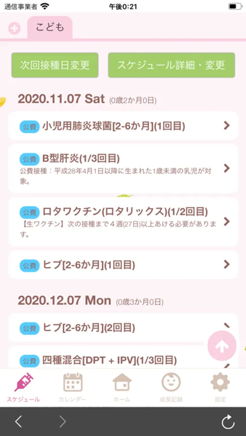 予防接種スケジュールも簡単に立てられます。子供の身長や体重を入力して、成長をチェックする機能もあります。