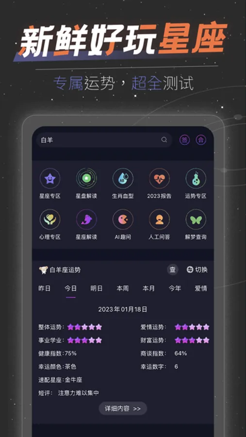 星座运势大全-年轻人喜爱的星座软件!和年轻人一起玩,符合你的口味,满足你对星座的知识要求!