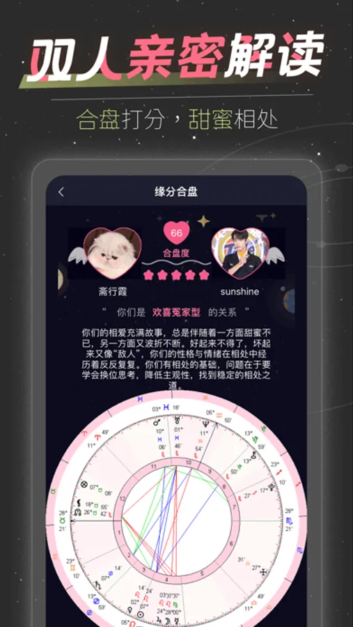 【星座合盘】新鲜有趣的星座运势大全和性格测试工具,还有星盘工具,可以查询双人星盘,单人星盘,双人进行合盘,还可以解析你的每日星座运势,提供丰富的星座和心理测试,十二星座运势每天更新,可以帮助你了解每个星座的每日,每周,每月的运势变化,更好了解自己和他人的星座运势和星座性格。