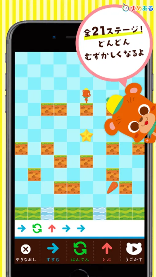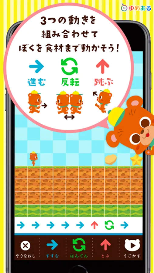 動きの組み合わせで、クマくんのおつかいを成功させるゲームです。