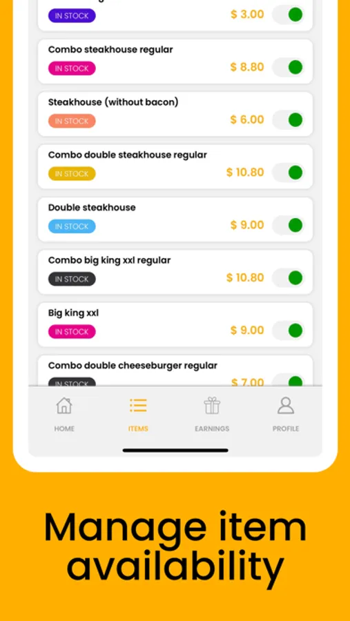 Sign up with Cabu and display your store items for paying customers to order from. Manage orders, items, store details, and more all from one app tailored for stores to earn. Sell and cash out on your hard earned money all with a few clicks.