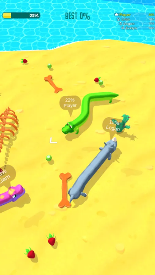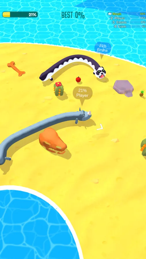 Keep eating and competing in the arena to open new islands! Every level has an achievement scale to keep you up with your progress. And don’t forget about tons of cute and funny skins that will unlock as you progress the game!