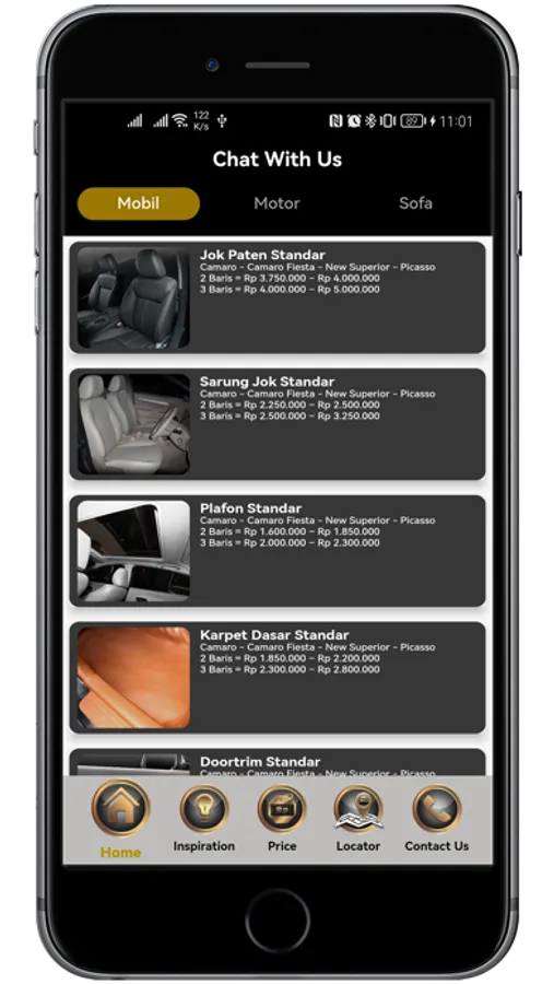 You can view creative works on the seatmaker profile page. Find a nearby seat maker with new and easier features, But enable your GPS first. Also find design inspiration from your favorite seatmaker with QRcode Camera.