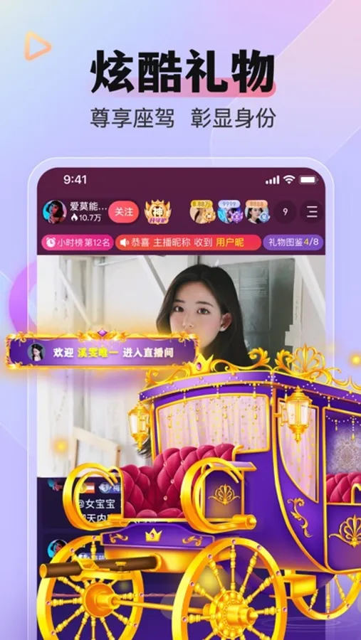 趣味礼物,浪漫礼物,活动礼物等等一定有你想送主播的礼物,送礼动画效果酷炫,赏心悦目。