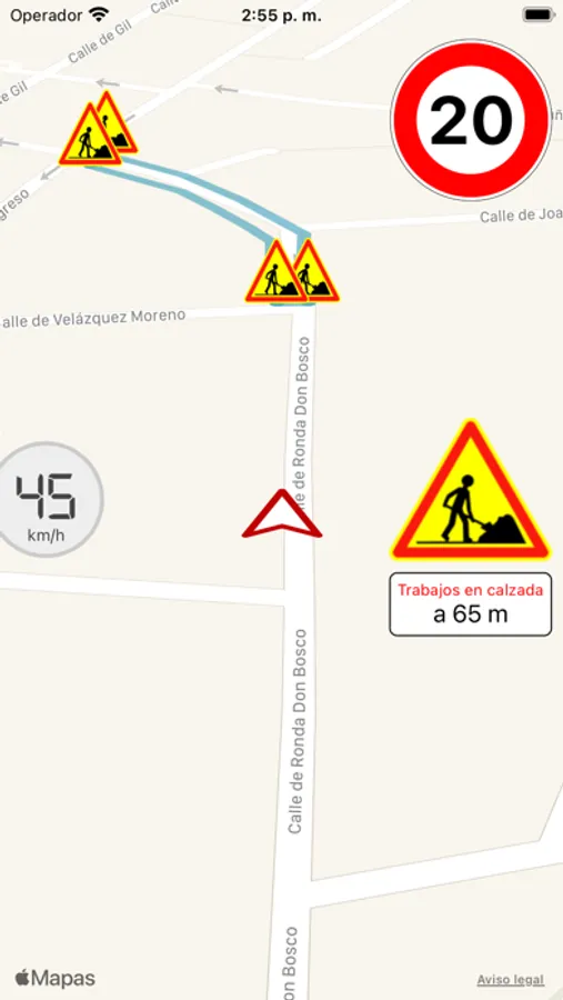 We recommend placing the Smartphone or Tablet in the vehicle console as if it were a navigator. When you start the application it will show the map of the city and it will position once you start driving. On the map it will show you the following information services: