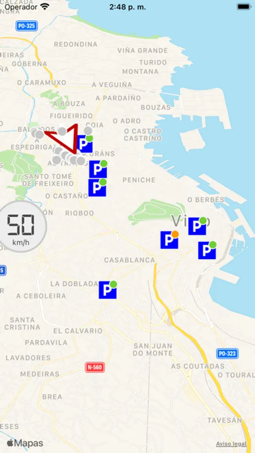 The Vigo Driving application is complemented by the “Vigo” application where you can consult the rest of mobility services such as: real-time traffic status, traffic cut notifications, gas stations with updated prices, electric charging points, traffic cameras, car parks, public transport, pedestrian areas, ...