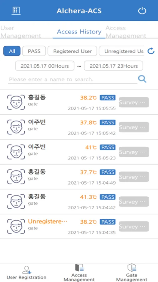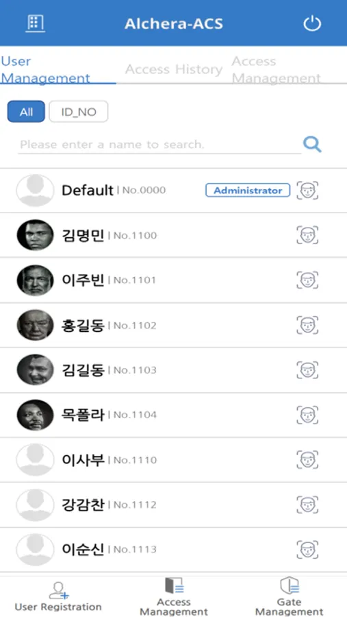 It is a mobile app for administrators that enables user management, gate management and access history check through connection with Alchera-ACS Gate, a non-face-to-face & face recognition heating check system.