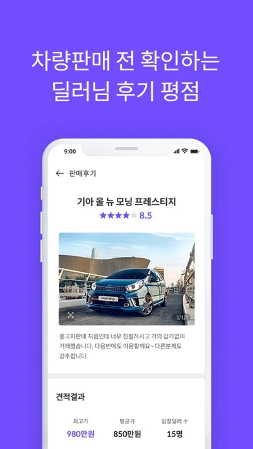 매매단지를 돌아다니지 않고 내차 정보, 사진만 등록하면 전국에 딜러들에게