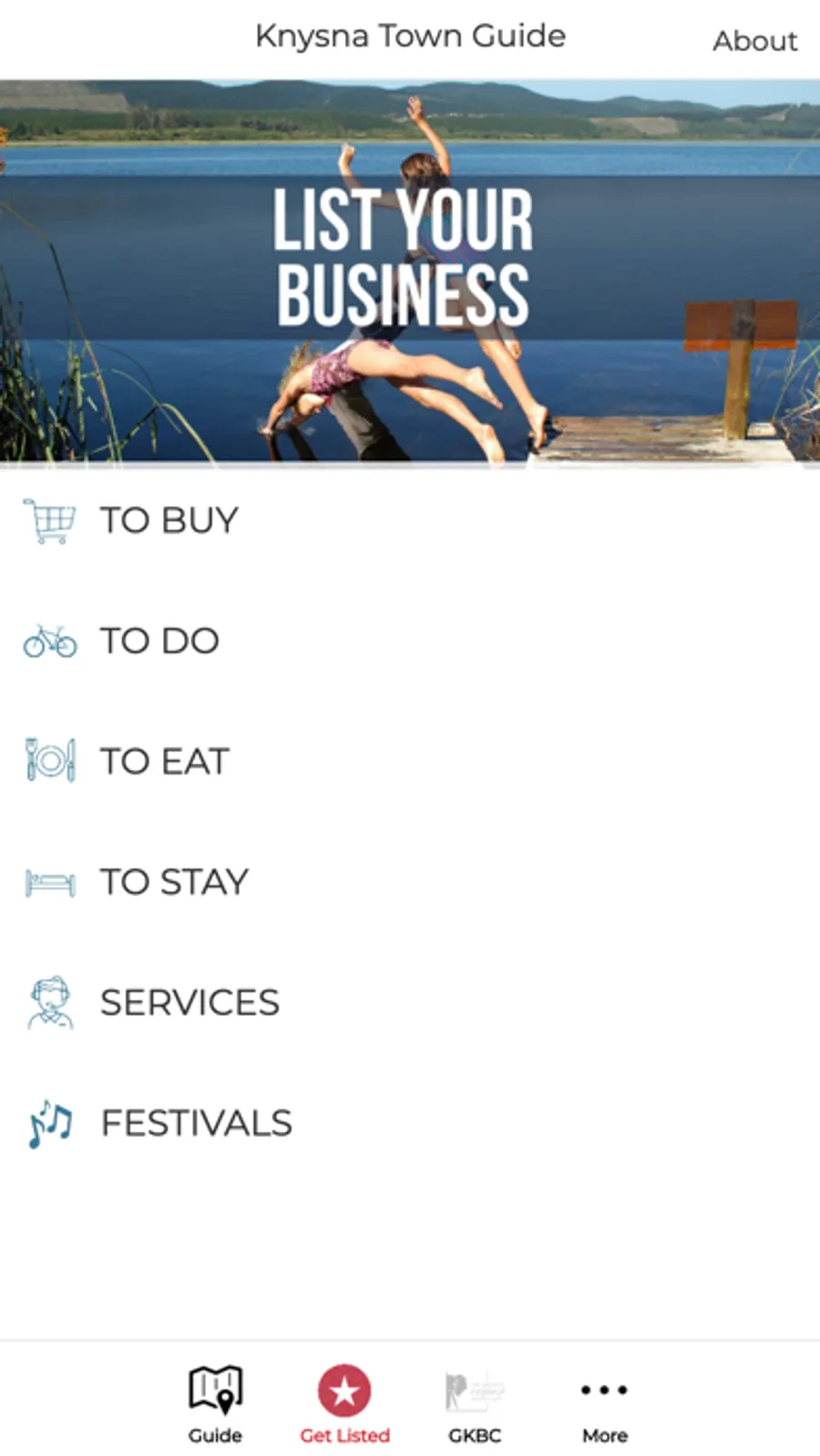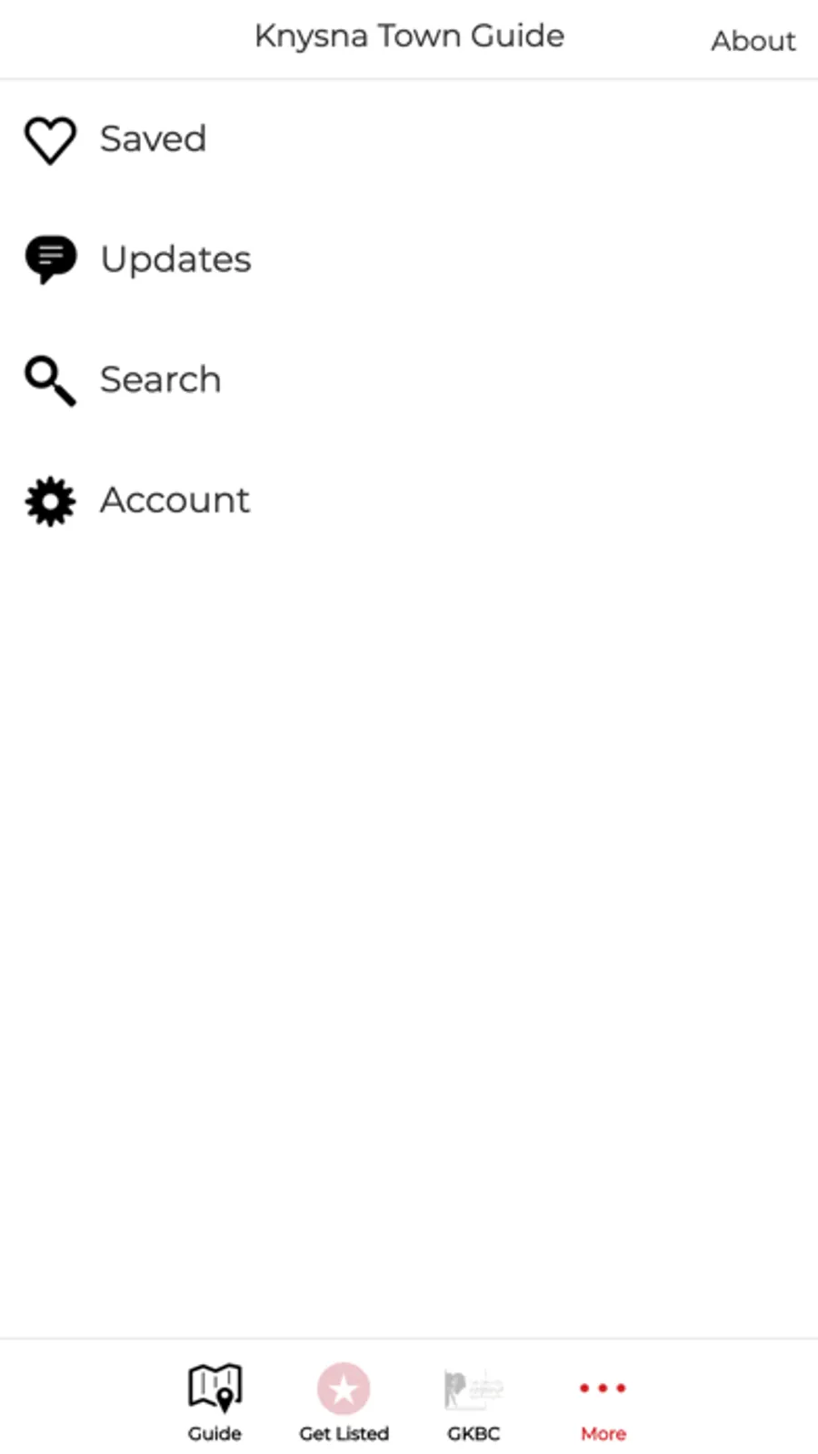 The Knysna Town Guide is a one stop business listing. Search app off contact details of businesses in Knysna. The Mobile App has listings form all industries ranging from Tourism to Personal Services and emergency contact numbers.