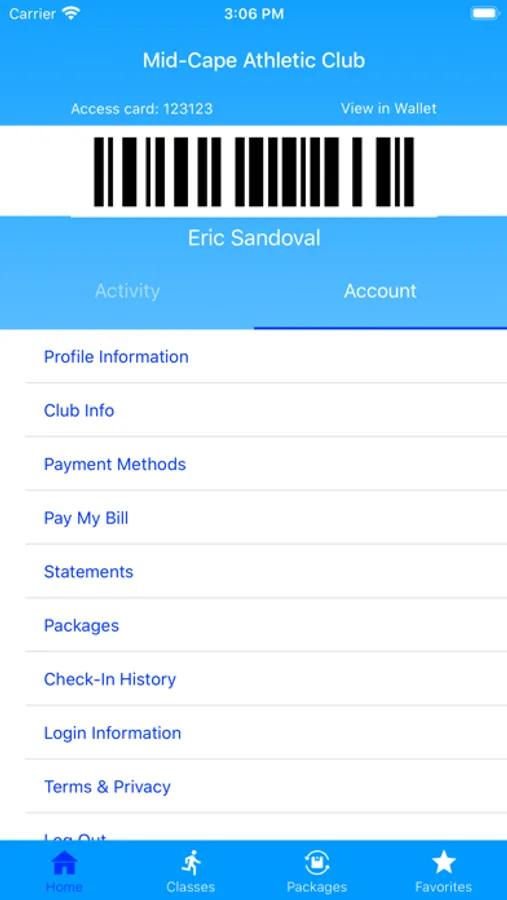 - Members can manage payment methods under the Account tab (add, edit, delete).
