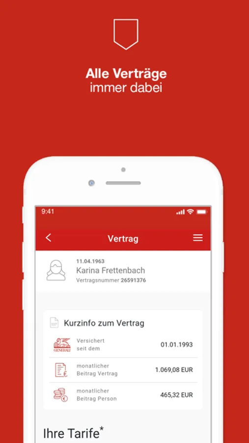 Im Bereich „Vertrag“ können Sie jederzeit die wichtigsten Informationen zu Ihrer Versicherung sehen. So wissen Sie immer genau, was versichert ist.