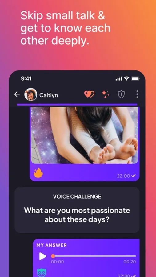 - Post answers to deep, playful, and flirty Sharings questions via text, photo, and voice