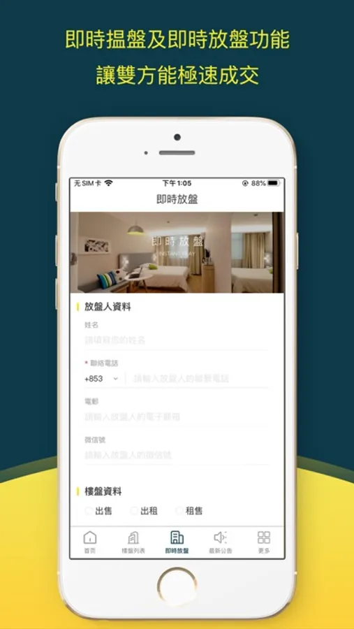提供網上即時揾盤及即時放盤功能,讓雙方能極速成交