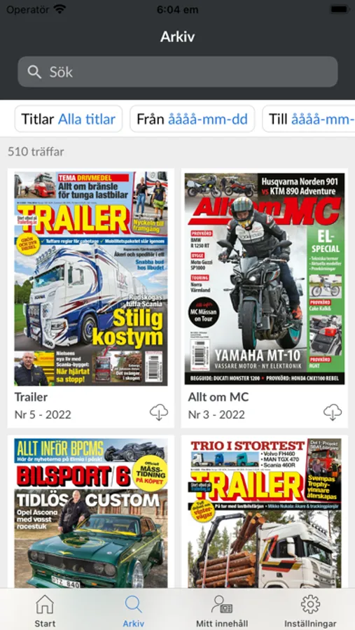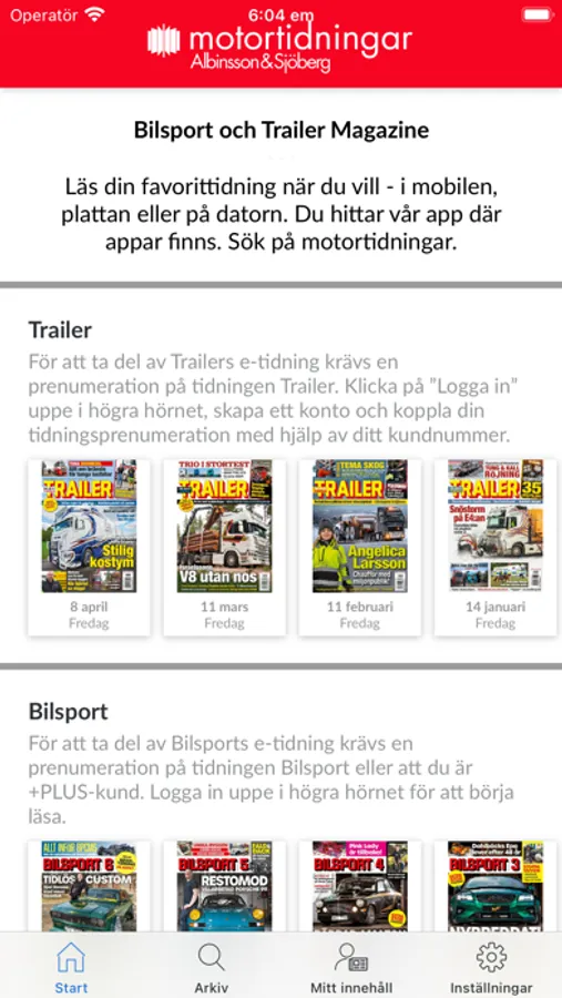 Motortidningar är Albinsson & Sjöbergs tidningsapp. I appen hittar du Bilsport, Trailer och Allt om MCs utgåvor sedan år 2010 och framåt. Innehållet är sökbart vilket gör att du enkelt hittar det du vill läsa. Du kan läsa tidningen både i pdf-format och som ren text vilket ger en läsvänlig upplevelse.