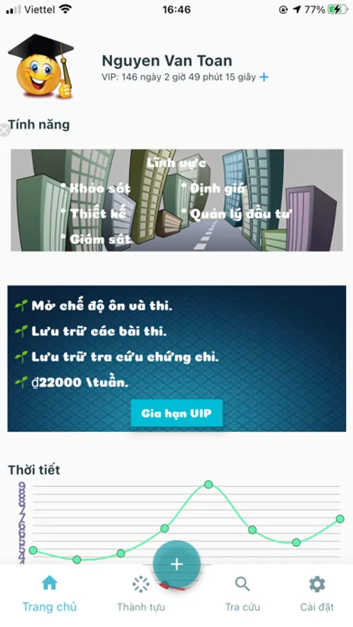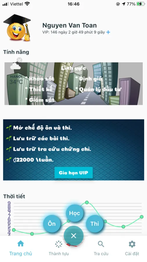 Các tính năng chính của ứng dụng: Học, ôn ,thi đều cần đăng ký tài khoản vip để có thể sử dụng được 7 ngày vip có thể trải nghiệm toàn bộ các tính năng.