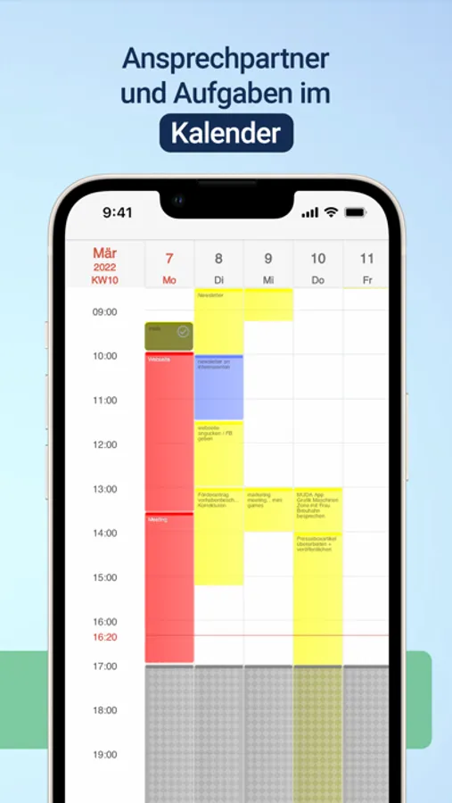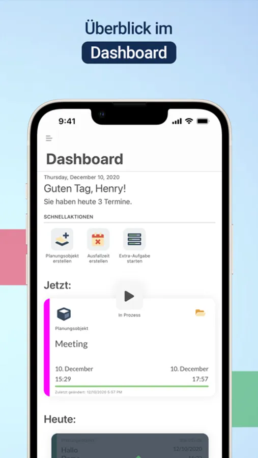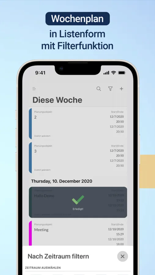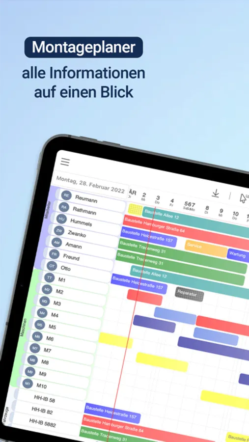 • Verschiebe, färbe, benenne alle deine Planungsobjekte um, passe deine Ausfallzeiten an oder verschaffe dir einfach einen schnellen Überblick über alle deine persönlichen Aufgaben