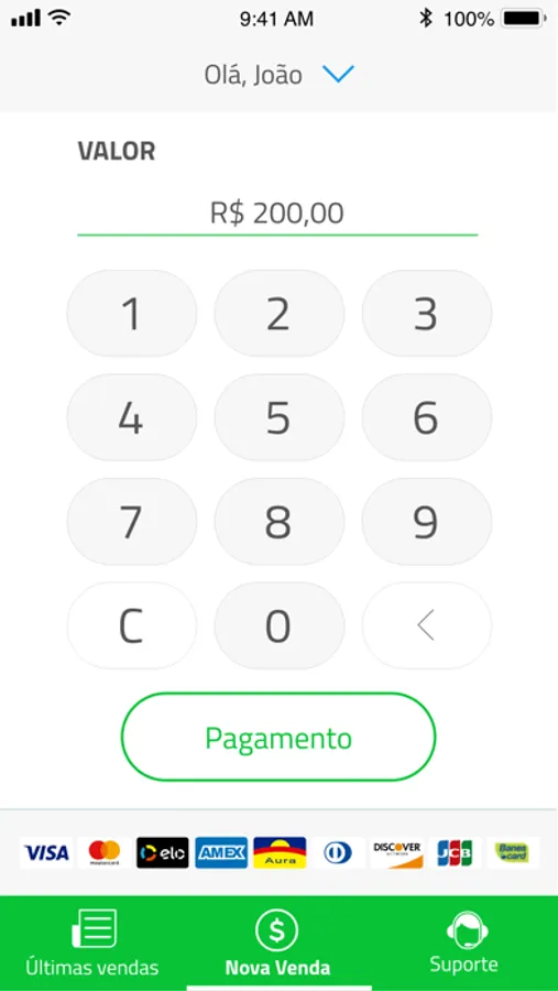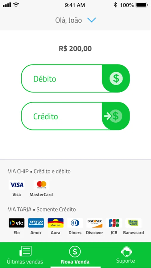 Funciona com cartões de Chip e Senha, cartões de tarja magnética, carteiras digitais e outros tipos de pagamentos eletrônicos.