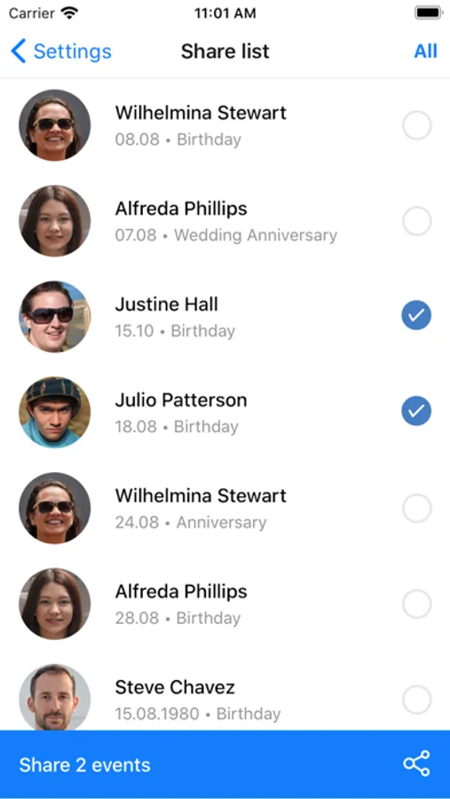 - Share events with your family or friends.
